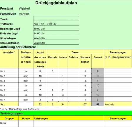 Planen Sie Ihre Drück-/ Treibjagden. Die Excel-Anwendung können Sie hier downloaden. Sie ist unbeschränkt erweiter- und anpassbar.